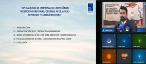 Como expositor invitado participó el funcionario de CONAF, Mario Corrales, quien presentó el Protocolo de las Operaciones Aéreas, destacando la importancia de la coordinación interinstitucional durante la temporada de incendios.